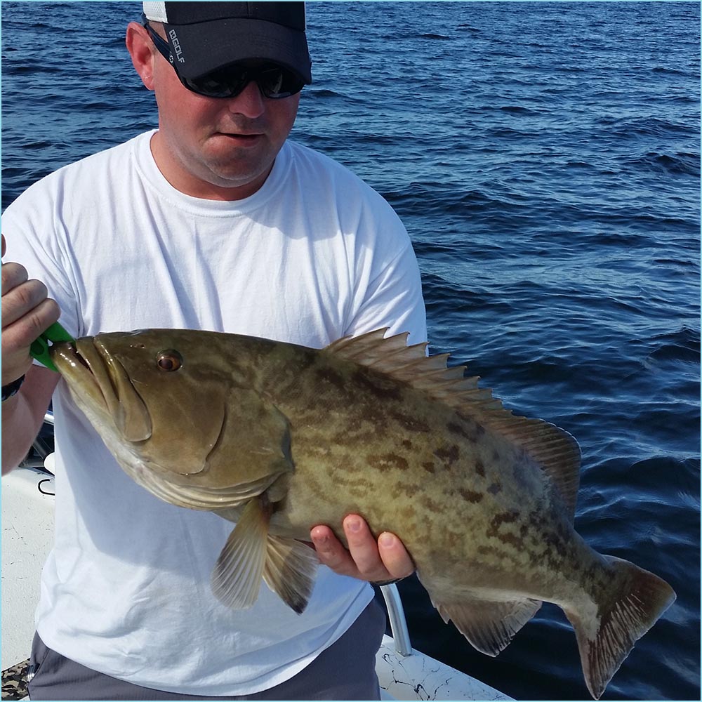 —Tampa Bay rockpile fishing. Our next move was into Tampa Bay to see if some of the rock piles held any gag grouper. Fishing in only 20 feet of water is an exciting way to fish for grouper. It’s the battle of the first 3 feet. If you can get a gag out of the rocks, you will have a chance to land it. We were fishing with heavy spinning tackle and using 120 pound test leader to help with the abrasion resistance. We got slammed on our very first bait and landed a beautiful gag grouper.